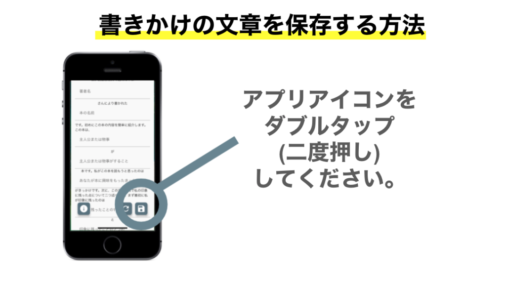 フロッピーディスクアイコン(一番右のアイコン)をダブルタップ(二度押し)してください。