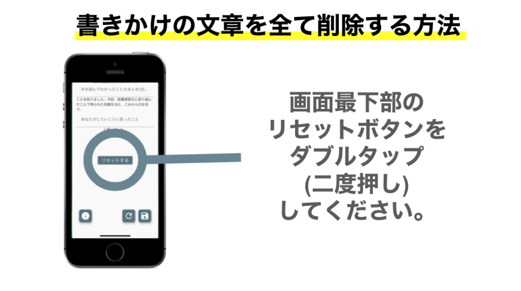 画面最下部のリセットボタン(「リセットする」と書いてあるボタン)をダブルタップしてください。